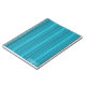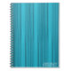 This spiral bound notebook features an abstract stripe design in various shades of blue.