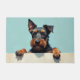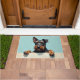 The soft dusty blue background adds a clean and soothing touch, perfect for welcoming entryways. Designed with extra space at the top and bottom, it allows easy personalization with names, welcome messages, or custom text—making it ideal for unique dog-themed doormats and thoughtful gifts.
