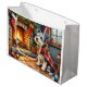 Cesky Terrier Fireplace with Christmas Lights Large Gift Bag