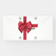 Cette bannière met en valeur les mots "C'est la saison d'être joyeux" dans une police d'impression unique et nette, avec des lettres rouges et un contour vert, ainsi qu'un ruban d'emballage de cadeau de Noël rouge, un nœud et des flocons de neige de chaque côté dans ce thème et style de Noël. Cette bannière a une impression simple face, des mesures de sécurité extérieure 10x20 cm, est fabriquée avec une finition mate élégante et est à la fois résistante à la décoloration et aux déchirures pour une utilisation à l'intérieur ou à l'extérieur, idéale pour annoncer n'importe quoi, des anniversaires aux remises de diplômes, des mariages aux anniversaires de mariage. Ourlets et bords soudés thermiquement pour une finition soignée, les bannières extérieures peuvent être achetées avec des œillets