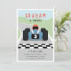 Une invitation pour l'anniversaire des enfants. Un thème de voiture de course dessiné à la main pour célébrer un anniversaire amusant et festif.