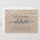 Belles lumières de chaîne de ferme rustique moderne, police de script bleu marine sur fond de papier kraft, annonce de mariage en cavale, carte d'invitation (C'est maintenant le moment de célébrer). C'est parfait pour votre réception de mariage et fête de célébration après le mariage. Ajoutez vos détails dans la police / lettrage correspondant.
