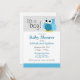 De jolies invitations personnalisées pour les douches pour bébés avec un hibou bleu illustré et le message "C'est un garçon !" en haut.