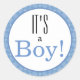 Fêtez votre arrivée prochaine avec ce C'est un garçon! Sticker rond classique. Ce design présente le texte "It's a Boy !" en lettres noires et bleues avec un arrière - plan motif-diamant chic.