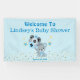 C'est une bannière de Ballons d'Ours Bleu Garçon. Un mignon ours gris avec des ballons qui disent, c'est un garçon. L'arrière - plan est des points bleus et blancs avec un brin de confettis et d'étoiles. Personnalisez avec le nom de maman à être, et la date.
