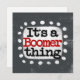 "It's A Boomer Thing" est un design de texte mignon en gris avec du texte en noir et rouge, avec une forme d'accent blanc et des points blancs texturés blancs qui l'entourent.