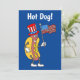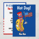 Hot Dog! C'est une invitation drôle pour une fête du 4 juillet. Une invitation hilarante pour une fête de l'Indépendance, un pique-nique, un BBQ ou un barbecue. Idéal pour une fête de grill dans le jardin ! Il présente un hot dog de dessin animé portant un chapeau patriotique et tenant un drapeau américain !