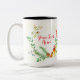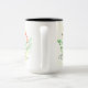 C'est une Mug Vacances/Noël hivernale - les couleurs sont le vert, le rouge, le noir et la crème.