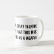 " Avant que vous commencez à parler, rappelez-vous que cette tasse double également comme arme." Cette tasse est la manière parfaite de dire ce type mâchant votre oreille outre de celui que vous avez une tasse de café en céramique et êtes disposés à l'employer.
