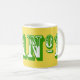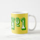 Un cadeau pour la personne qui est votre Numéro Un. Une tasse qui montre qui est Numéro Un pour vous. Couleurs vertes et jaunes avec un style de texte décoratif. Numero Uno !