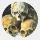 Cezanne Pyramid of Skulls stickers. Oil painting on canvas from 1901. During the final years of his life, Paul Cezanne devoted a number of different still life paintings to the theme of death and human vanity. Pyramid of skulls is arguably his most powerful skull painting. The work features three human skulls stacked on a table gazing towards the viewer without lower jaws. A great gift for fans of Cezanne, post-impressionism, skull paintings, and French art.