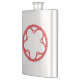 The product is a good size and came exactly as it was pictured. The lid is not attached to the flask, which could be dangerous on drunken nights... The print came out surprisingly well and looks very sharp. Would definitely recommend.