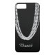 Des cordes de perles blanches décorent ce coque iphone, lui donnant une classe avec un bord. Il est facile de customiser avec votre nom, monogramme ou supprimer entièrement si vous préférez.