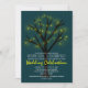 Chaîne de lumières Bois de chêne rustique Invitations de mariage avec des couleurs bleu-vert et jaune. La conception de l'arbre est une silhouette de branche d'arbre nue éclairée par des lumières scintillantes. Ils sont parfaits pour un mariage du soir, un mariage d'automne ou d'hiver. Jeu de Mariages correspondant :