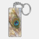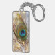 Porte - clé fascinant de vacances avec la belle plume de paon, la tresse argentée et les lumières de Noël de scintillement