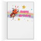 Une petite coccinelle magnifique planant au-dessus des tournesols et apportant une salutation colorée d'anniversaire pour le de 1 an très spécial en votre monde.