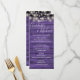 Carte de menu Rustique mariage avec de jolies lampes à cordes et des noms de style signature, cette carte de menu élégant peut être personnalisée avec vos informations en lettrage blanc chic sur un arrière - plan de panneaux de bois violet. Conçu par Thisisnotme©