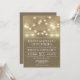 String Lights + Rustic Burlap Wedding Invitations - présente un arrière - plan imprimé en burlap avec un design de lumière à cordes en haut.