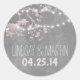 autocollants de mariage rustique - sceaux avec branches d'arbres gris et roses et chaîne de lumières suspendues