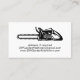 A striking business card featuring a stylized chainsaw. The typography is in a black colour. This great card would work well for a garden machinery repair and restoration business, chainsaw servicing or tree felling company. Easy to personalize with your own company information.