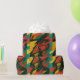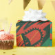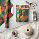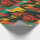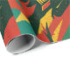 Abstract design in red, green and yellow tones with denting shapes and dynamic textures that evoke energy, strength and movement. A vibrant, contrast-filled pattern, perfect for wrapping gifts in a bold, alternative, and modern style