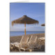 Chaises de plage de sable avec parasol