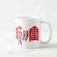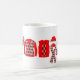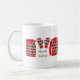 Des Voeux Chaleureux. Une tasse conçue avec des vêtements motifs Jacquards aux couleurs rouge, noir et gris. Customisez-le avec votre propre texte parmi d'autres options.