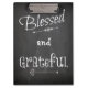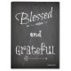 Chalkboard background with inspirational text that says Blessed and Grateful. Great for home or office meetings.