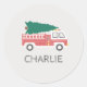 Chalk Classic Christmas Tree on a Firetruck Round Sticker