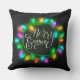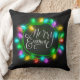 Chalk Drawn Merry and Bright with Lights Throw Pillow