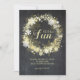 Glitzy, glamourous winter wreath + faux chalkboard texture in the background designed on custom Holiday Party Invitations. ((Contact ujean4791@gmail.com for custom work and/or matching items.))