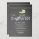 A charming invitation based on a chalkboard background which features a baby stroller, a delicate vine and the word "shower" in pink and blue.