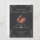 The front of the invitation is adorned with black candles, orange flowers, and black pumpkins, adding a festive yet sophisticated touch to the design. These Halloween-themed elements are intricately detailed, adding depth and texture to the overall look.