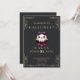 At the centre of the design is a super pretty ghost, adorned in shades of pink, black, and white. This playful ghost wears a black bow decorated with pink skulls, adding a touch of Halloween fun and whimsy to the invitation. The combination of bold colours and cute elements gives the ghost a charming, modern twist, perfect for a stylish Halloween party.