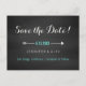 These stylish wedding save the date postcards have a black chalkboard look background, and modern text styles in white and turquoise. A white arrow surrounds your wedding date. You can also personalize the back of the postcard with your personal message, or simply delete that text completely if you would prefer the back to be blank.