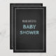 Personalized baby shower invitations in elegant and fun chalkboard style pattern with light pastel blue text. Customizable with your text, contact us to request a colour change. Perfect for a baby boy.