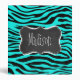 Chalkboard; Bright Turquoise Zebra Animal Print Binder