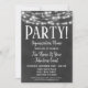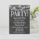 A fun black and white chalkboard corporate party invitation with glowing lights at the top.