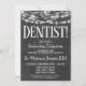A fun black and white chalkboard dentist graduation party invitation with glowing lights at the top.