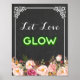 Chalkboard Floral Let Love Glow Neon Wedding Sign Poster.