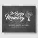 Memorial guest book featuring a chalkboard background and a tree full of hearts.