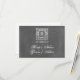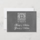 A wedding rsvp featuring a chalkboard inspired design. Personalize with the bride and groom's names on front and with the date on back.