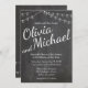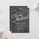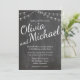 Chalkboard Invitation with String Lights for a wedding. The bride and groom's names are written in a large script font across the page. You can change the fonts, font colours, and all of the text. The invitation matches a collection in my store.