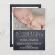 Sweet and full of charm, this modern photo birth announcement is the perfect way to introduce the newest member of your family. Personalize the rear side of the postcard with your return address for easy mailing. Custom colour available upon request.