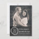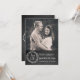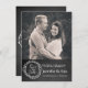 Fun rustic chalkboard look wedding save the date announcement, with custom photo at the top of the card, and a charcoal grey blackboard look, on the bottom. Graphics of a wreath with text reading Save the Date, decorates the bottom. Custom white text is ready to personalize with your photo and information. Lovely way to announce your up coming wedding.