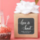 Des autocollants tendance et mignon pour le mariage avec un joli design de texte de typographie blanche qui dit l'amour est doux sur un arrière - plan de tableau noir faux. Personnalisé ces étiquettes cool avec le nom de la mariée et du marié et la date du mariage.