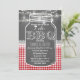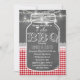 Unique I DO BBQ card design featuring a chalkboard background, red gingham, white lace, string lights and a mason jar for the text. Use Customize tool to add your info. For more, please, visit my “I DO BBQ Chalkboard/Barn/Mason Jar and Gingham” Collection.