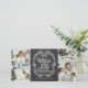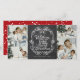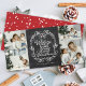 'Wishing You A Very Merry Christmas' White Greeting Typography Within A Scrolled Traditional Vintage Frame, Rustic Christmas Chalkboard With Mistletoes 4 Photo Collage Holiday Card.