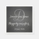 Happily ever after. Monogram Paper Napkins for Wedding Receptions with printed black chalkboard photo effect. Elke Clarke ©2011 for MonogramGallery at Zazzle. Customize your bride and groom names, wedding date, monogram initial and font colours. Just click on the "CUSTOMIZE" button and follow the prompts.