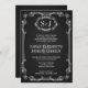 Elegant yet whimsical eye-catching black and white wedding invitations with ornate floral wreath with monogram accent. Beautiful retro style chalk board typography with a swirly vintage border. Perfect for modern weddings with a sophisticated touch of rustic charm for the traditional bride and groom. Easy to use template can be modified for formal or semi-formal weddings. Click Customize It to change the type style, colours, and size of fonts. Please contact us for help with customization if you need additional room for your wedding details.